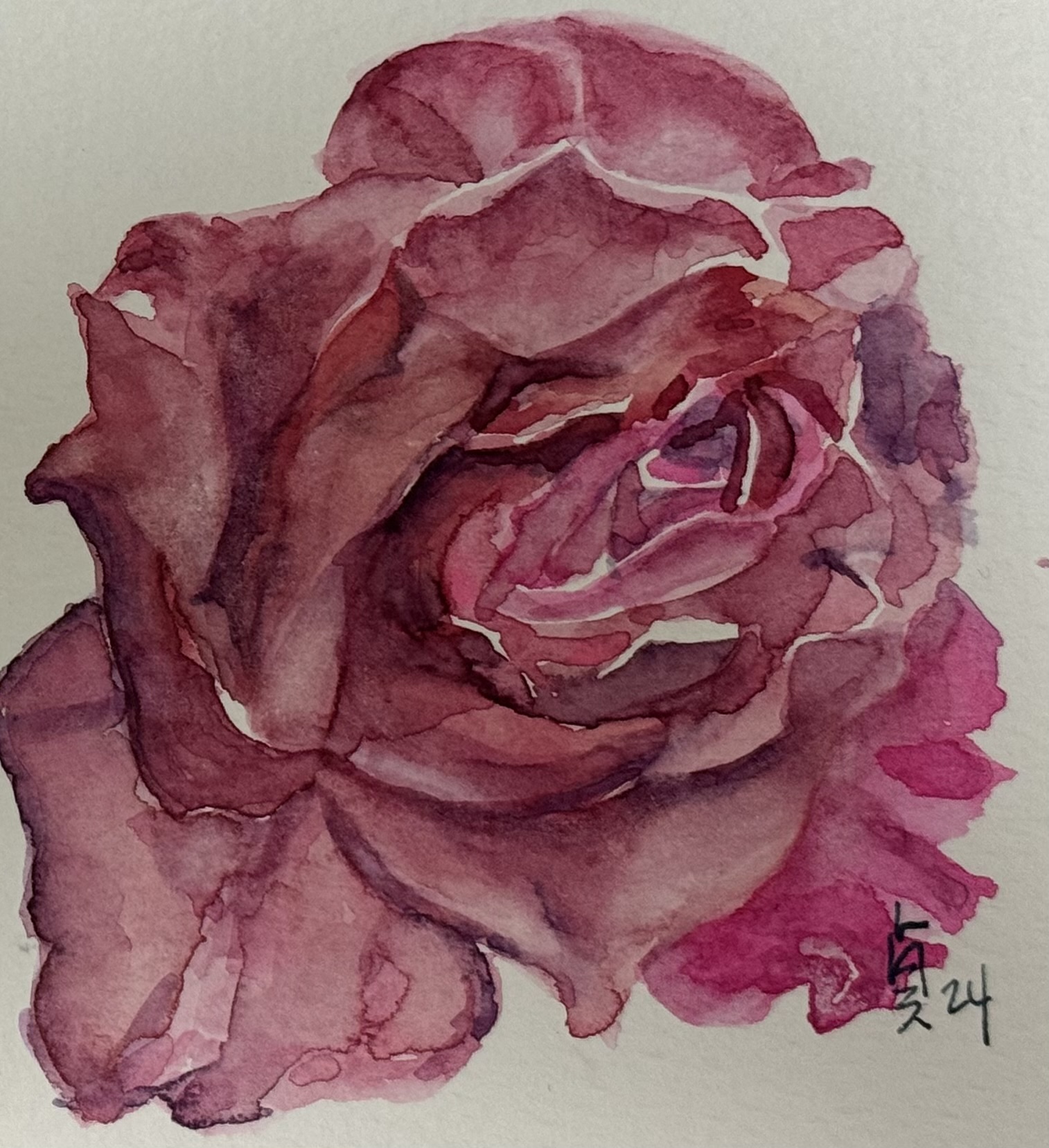 한 송이 장미꽃이 떨어져 내리는 것 같았다.